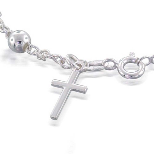 -. Feature : Rosary Bead Bracelet / Small Cross Charm 15mm by 10mm / Material: .925 Sterling Silver / Measure: 7.5 Inches Long / Weight: 5 Grams