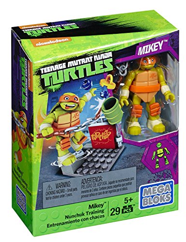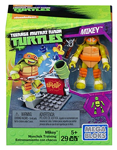 -. Binding : Toy -. Brand : Mega Bloks -. EAN : 0887961290165 -. Feature : The city comes to life as the Turtles sharpen their skills / One buildable Mikey micro action figure with nunchuk accessory / Buildable alleyway with swiveling platform and barrel target with a sP.R.Ing base / Connect with other Mega Bloks Teenage Mutant Ninja Turtles sets / Build the Turtles' world from the sewers up! -. IsAdultProduct : 0 -. ItemPartNumber : DMX27 -. Label : Mattel -. Manufacturer : Mattel -. Model : DMX27 -. MPN : DMX27 -. PackageQuantity : 1 -. PartNumber : DMX27 -. ProductGroup : Toy -. ProductTypeName : TOYS_AND_GAMES -. Publisher : Mattel -. ReleaseDate : 2016-01-01 -. Studio : Mattel -. Title : Mega Bloks Teenage Mutant Ninja Turtles Mikey Nunchuk Training Pack -. UPC : 887961290165 -. Warranty : 1 year warranty against manufacturer defects