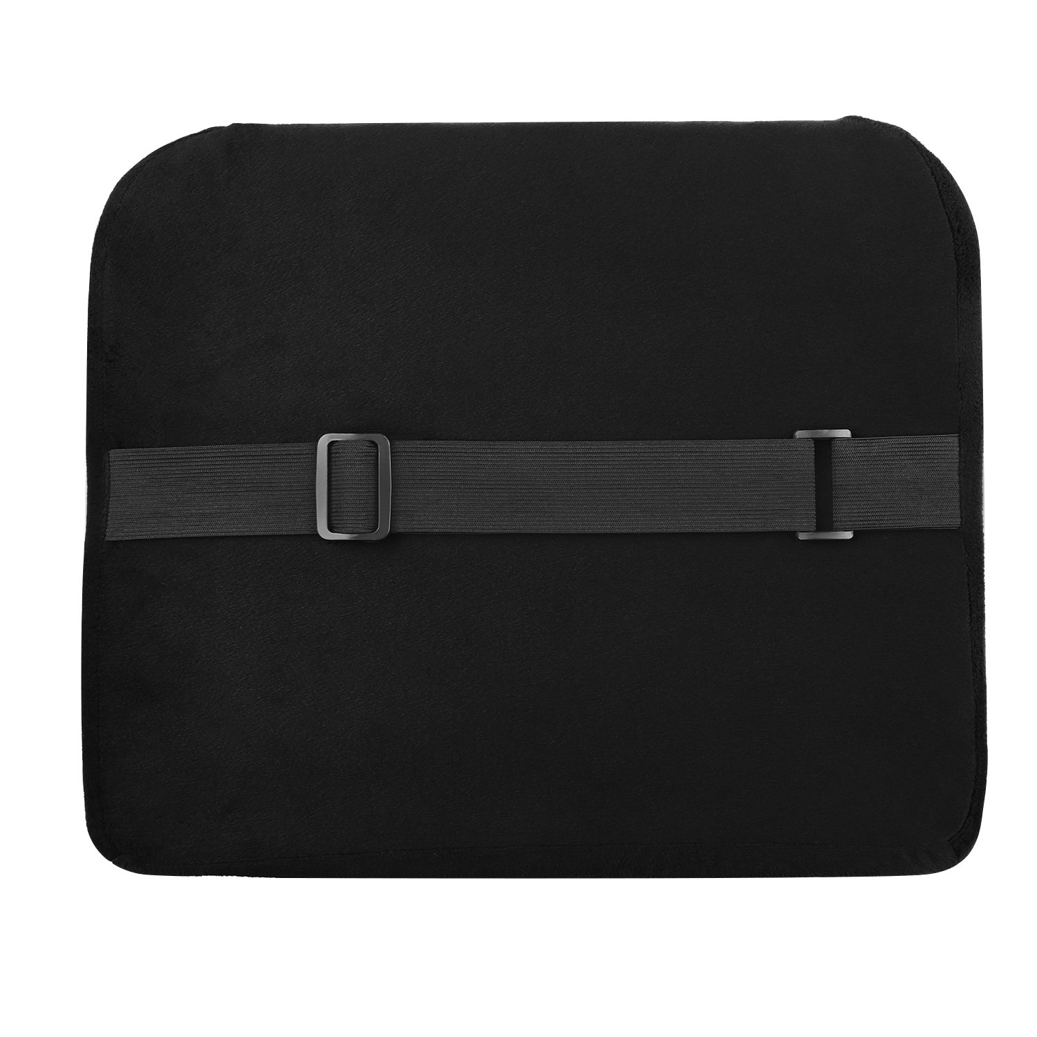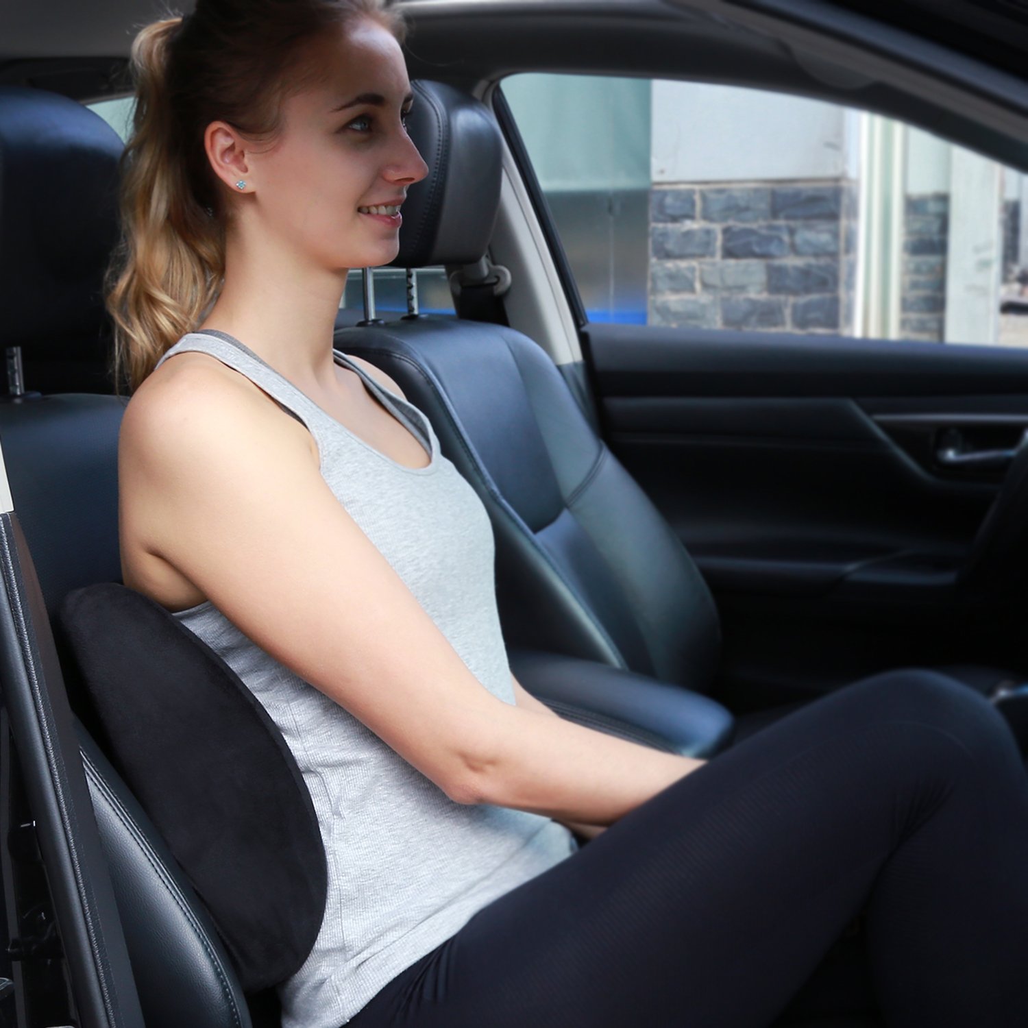 An ergonomic form firmly supports the S-shaped curve of the lumbar spine.