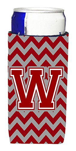 Letter W Chevron Maroon and White Ultra Beverage Insulators for slim cans CJ1049-WMUK