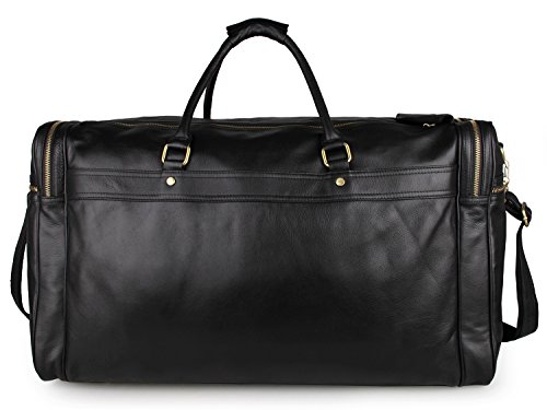 -. Title : Black Genuine Leather Overnight Travel Duffle Weekend Bag Lage Carry On