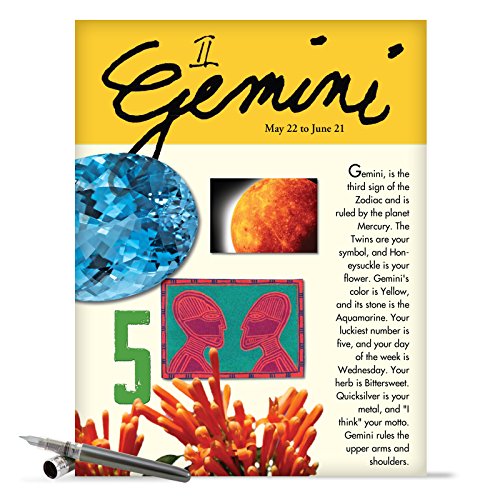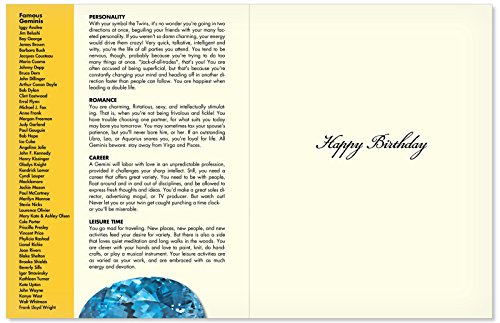 J9444 Gemini Astrological Sign Birthday Card - Famous People, Moto, Personality, Stone, Symbol, Planet, Color, Flowers and Dates (Extra Large 8.5'' x 11'' w/ Envelope)