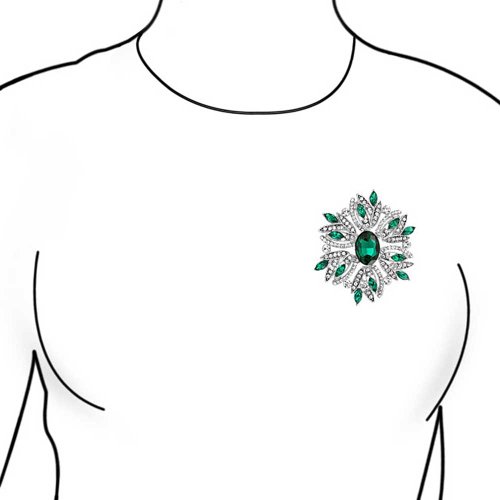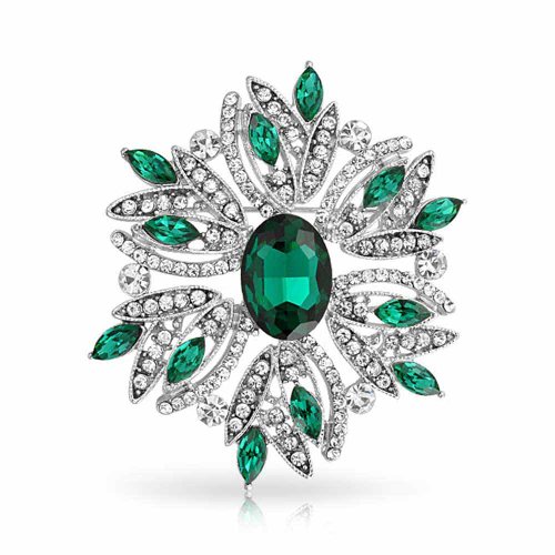 Pick the perfect piece to help you get into the holiday spirit. This Christmas brooch has a classic color scheme and classic design that is sure to add a festive flair to all the family and friend gatherings you go to this season. We used colorless and Simulated Emerald color crystals on our holiday pin to create the look of leaves that let it be reminiscent of a wreath. Despite all the dazzle, this Christmas jewelry only weighs 22 grams, which means it will not weigh you down. And at 2 inches in width, our wreath pin will look great on a cozy Christmas sweater or sleek blazer. Whether you get it for yourself or for loved ones who could use some cheer, order this gorgeous holiday jewelry in time to put it under the tree.