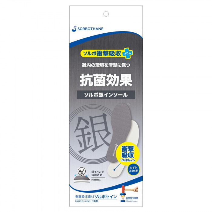 新開発の銀メッキ繊維が、高い抗菌力でニオイの元になる細菌等の増殖を抑制。さらに歩行時には、ソルボが衝撃を緩和します。
