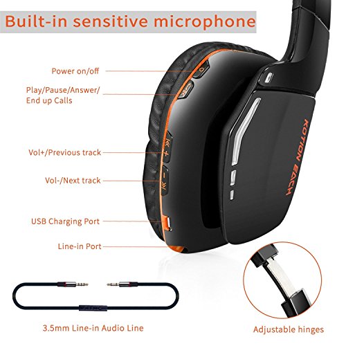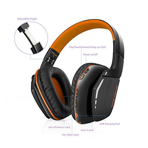 Great Sound Quality and Noise Isolation Pads -- Equipped Bluetooth 4.1 version chipset with up to 10m/33ft of Range without obstacles, hands free headset, high definition stereo headphones provide exact and natural sound. Up to 8 hours playing time and standby time 180 hours. Its closed protein ear cushion blocks noise in almost any environment for better guaranteed comfort.