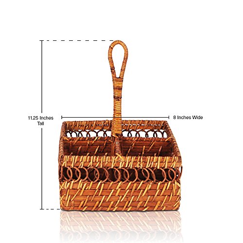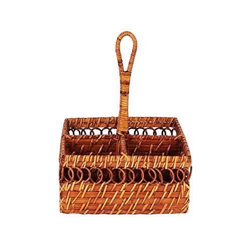 Wicker Cutlery Caddy - Lightweight and Portable Utensil Holder for Dinner Tables and Buffet (Square)