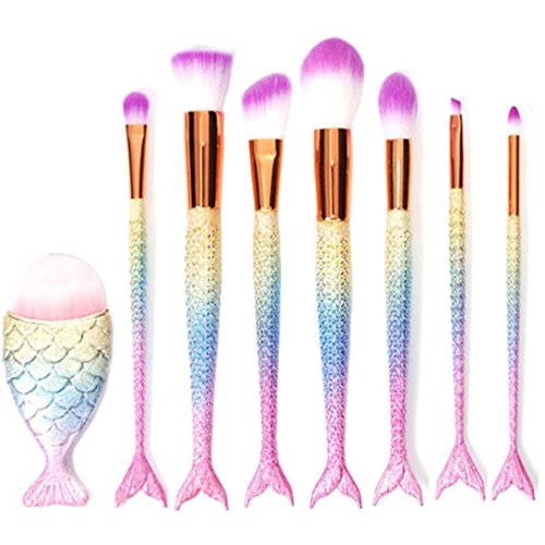 - ⁂Popular Mermaid Handles - The handle of these makeup brush set is both made of aluminum tube premium plastic, in mermaid tail shape with 3D fish scale, will give you an incredible touch feeling as well as comfortable to use.