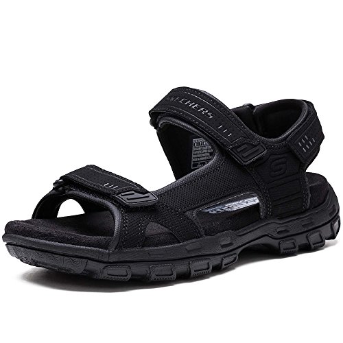 2つの調節可能なフック・アンド・ループ・ストラップとメモリーフォームクッション付きフットベッドを備えたリラックスフィットのアウトドアサンダル