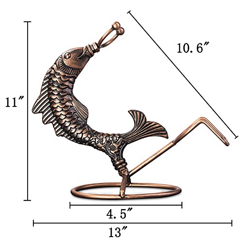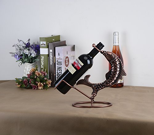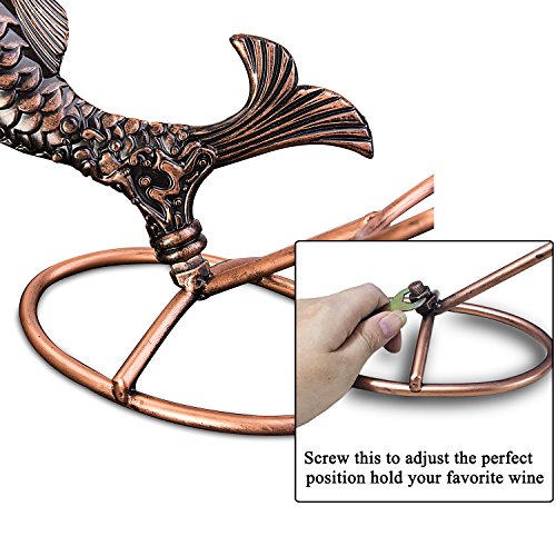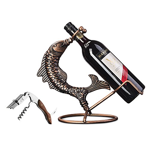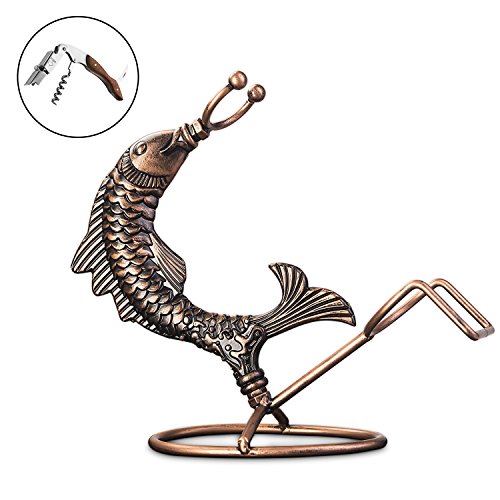 Inmount Wine Rack with Corkscrew Set, Decorative Tabletop Wine Bottle Holder, Wood Opener, Artistic Retro Vintage Bronze Tone Metal Fish Wine Stand