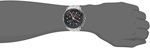스카이 호크 AT:Eco-Drive테크놀로지를 채용했다, 4개의 타임 존 표시에서의 전파 시계의 정확성에 의해원자 시간을재 정의 하고 있습니다. 43도시의 세계 시간,1/100 초크로노그래프(최대24시간)고, 영구 캘린더,99 분카운트다운 타이머,성전력,알람2종류.GMT,회전 계산자 베젤,비반사 크리스탈을 채용.스테인레스 스틸제 블랙 이온 플레이 T《구》가공필 베젤을 탑재.
