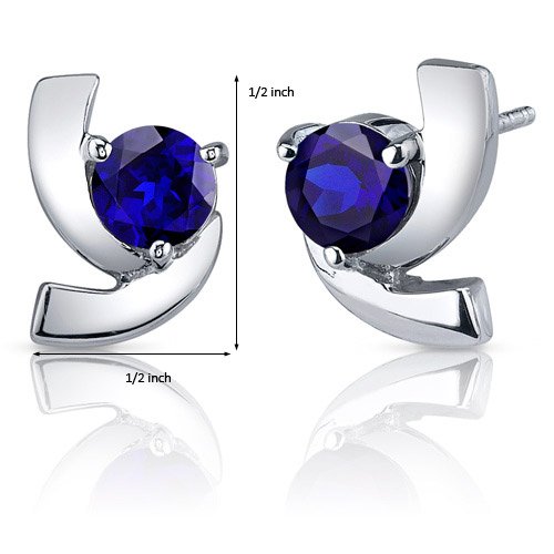 Gemstones: 2 Pieces Lab Created Blue Sapphire, Round Cut 6 mm diameter, 2.50 carats total weight, Ceylon Blue Hue with Brilliant Sparkle. Earrings: 3.50 grams, Pure Sterling Silver Rhodium Finish with .925 stamp, Earrings feature Stud Posts with Bullet Backs, exceptional Design, Craftsmanship and Rhodium Finishing. Perfect gift for Mothers Day, Birthdays, Valentines Day, Graduation, Christmas or just about any other occasion. Money Back Guarantee. Includes a Signature Gift Box & style SE7594Feature