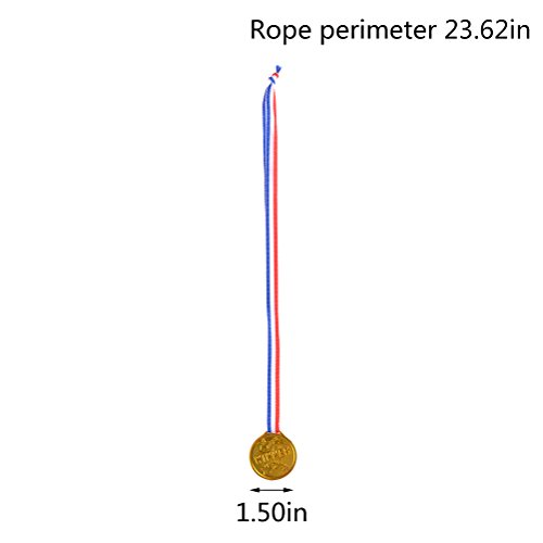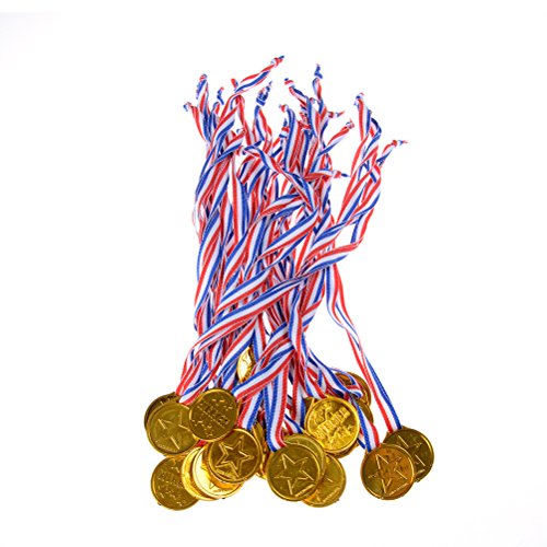 -. Feature : Winner Award Medals Set: comes with 48 Pieces plastic gold medals per package, bulk of inexpensive medals to award kids who achieve good peformance / Material and Size of reward medals: made of lightweight plastic, painted gold color, measures 3.8cm/1.5 inch in diameter, 30cm/11.8 inch ribbon in length with red, white and blue color, a good length which makes it easy to fit over the kids' heads and the medals are shiny like real gold / Star Winner Medals: designed with a big star on the front and "Winner" word stamped on the reverse, champion symbol, good incentives to stimulate children positivity / Multipurposes: these plastic medals are great for teachers or es to motivate kindgarten age, elementary students, child athletes, as well as for parents to praise their children for every effort and good behavior / Perfect small adwards: excellent for Olympic themed parties, school events, kids games, family reunion, sports themed party baby shower, festival costume etc
