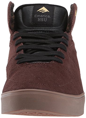 Studio : Emerica Publisher : Emerica Binding : Apparel Product Description With this redesigned lightweight build, the hsu G6 is now the lightest Vulc mid out. The weight has been chopped down 125 grams from the first hsu and add in even more support this time around with our new upper construction, a first for Emerica, using an internal G6 welded frame that doesn’t bag out.||Protect your feet with on point cushioning, in signature G6 high rebound foam, while getting the best grip and control with new welded midsole triangle tread outsole. This offers optimum grip, instant flexibility, and natural board control. Don’t forget about breathability. The hsu G6 integrates cool air ventilation throughout the tongue and medial quarter to prevent overheating. 0
