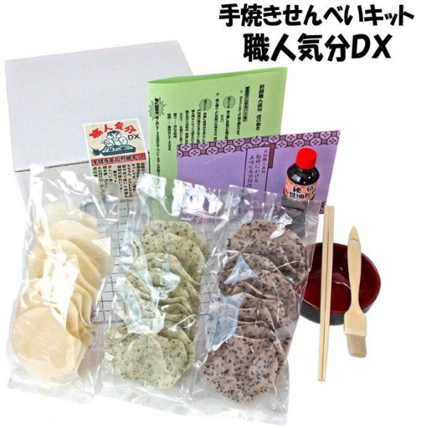 | 「職人気分」の名の通り、お煎餅を焼いて、煎餅職人の気分を味わってみようというキットです。ご自宅で、アウトドアで、ご家族、グループ、友人、知人とみんなで一緒に楽しめます。付属の秘伝醤油たれを使っても良し、オリジナルに挑戦するも良し、職人気分でせんべいを焼いてみましょう!! |