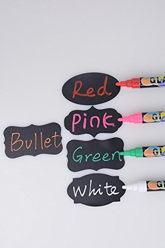 -Easy to Use: When you’re ready to write, just pick up one of your chalk markers, shake it up and down, press it against the area where you’re going to write, and then admire all of the smooth, colorful, and legible new words that you’re creating!