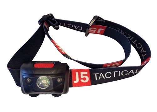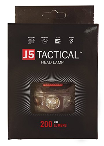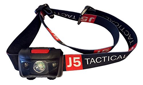 J5 Tactical LED Headlamp Flashlight with Red Lights for Tracking or Reading - Outdoor Running, Camping, Backpacking, Fishing, Hunting, Climbing, Walking, Jogging - Water Resistant