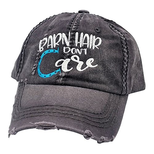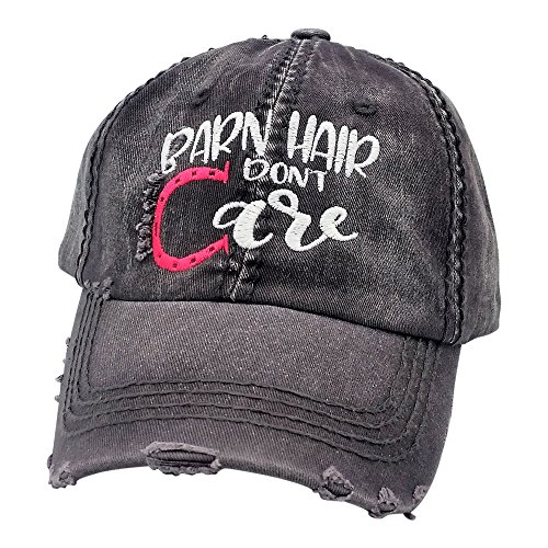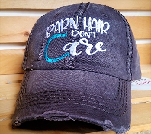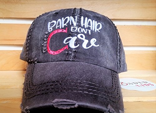 Product Description Embroidered design barn hair don't care features a two-tone design on a soft, distressed baseball cap with faux leather and metal buckle back. Cap is proudly designed in the US by Loaded Lids. 0