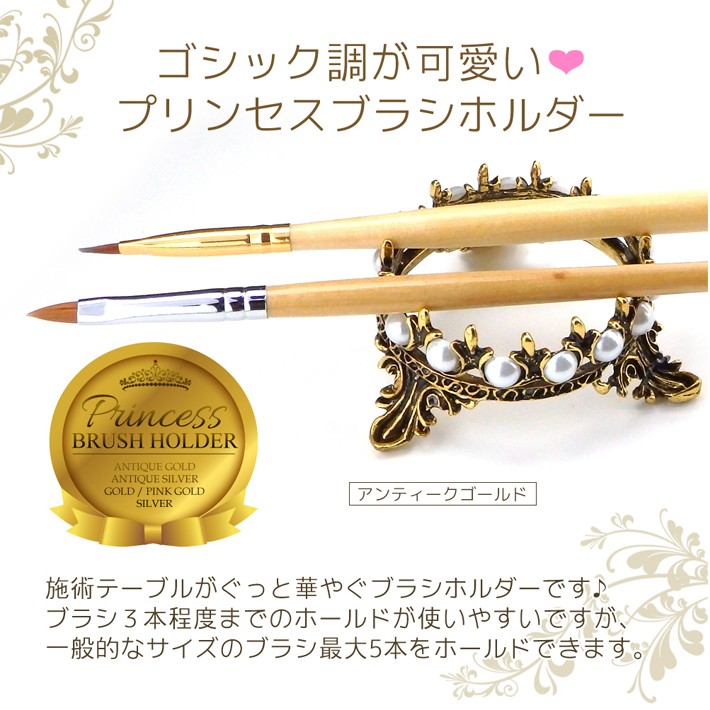 とっても可愛いプリンセスブラシホルダーです♪最大5本までホールドできます。ブラシ3本程度のホールドに最適です。【サイズ】約69mm×約69mm【高さ】約30mm【ブラシホルダーの間隔】約8mmプリンセスブラシホルダー ネイルサロン ネイル ジェルネイル スカルプ ネイルアート 筆 ブラシ 固定