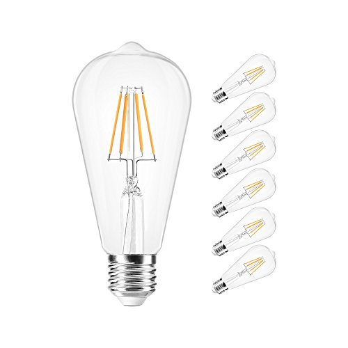 RockyRob Edison Bulb Dimmable LED Filament - 6W Vintage Edison Light Bulb 60W Incandescent Equivalent 2700K Soft White E26 Medium Base for Home Office Restaurant Reading Antique Lighting - 6-Pack
