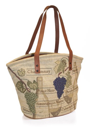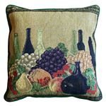 Beautiful tapestry construction in a wonderful motif featuring grapes and Old World bottles.