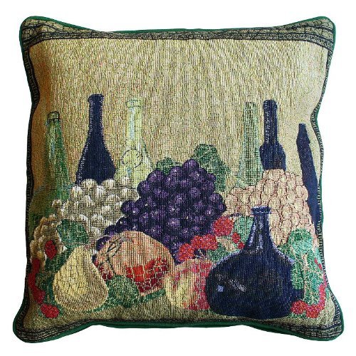 A beautiful tapestry construction is featured in a wonderful motif featuring grapes and Old World bottles. Many other styles and coordinates available, including chair pads, table linens and rugs, from Park B. Smith. Cotton and polyester cover with polyester fill. Spot Clean. Imported.Feature
