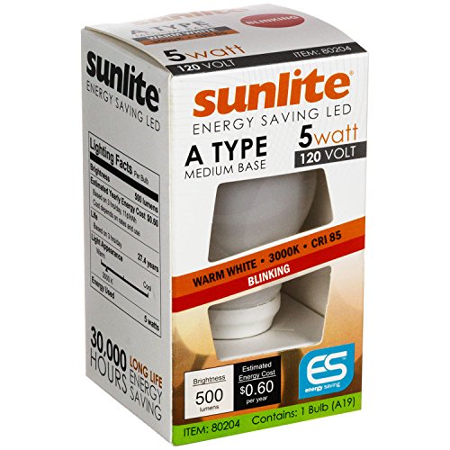Sunlite 80204-SU LED A19 Blinker Light Bulb, 5W Medium (E26) Base, 3000K Warm White