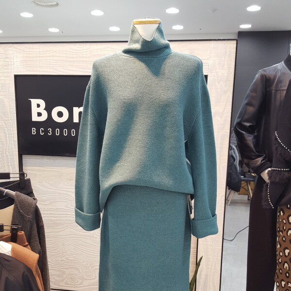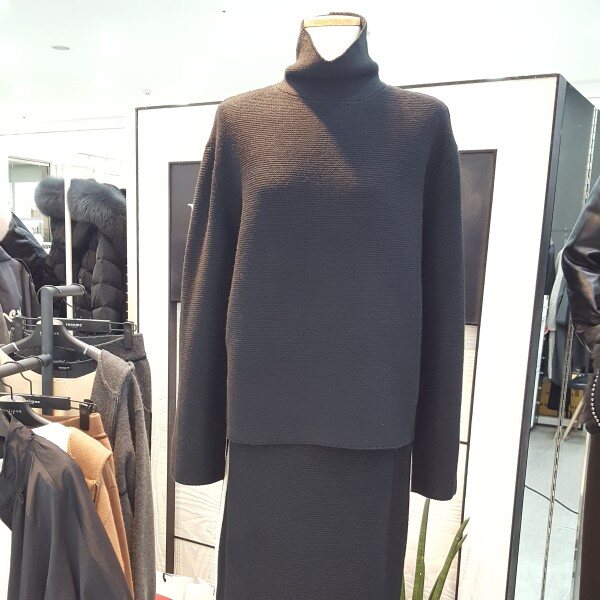 허리밴딩 H라인 니트스커트뒷트임허리밴딩이 넓어 잡아주는착용감 편함길이감 무릎밑선셋트로 입어도 이뻐요