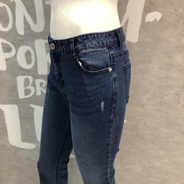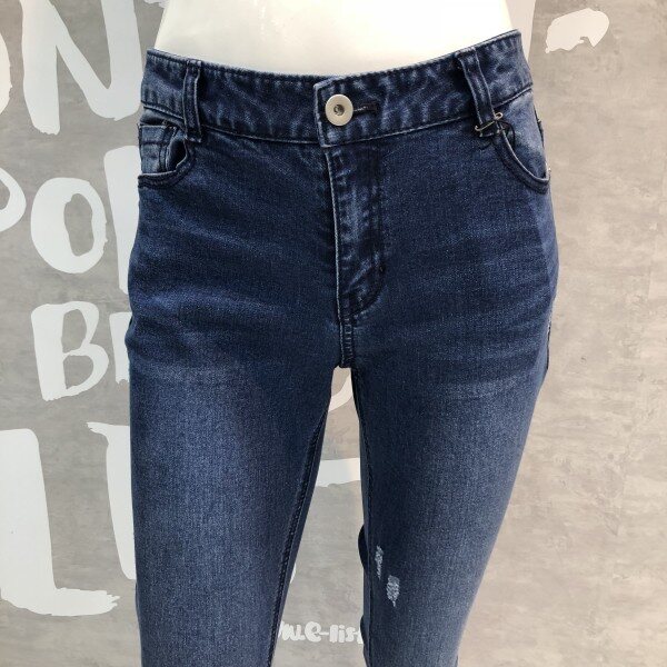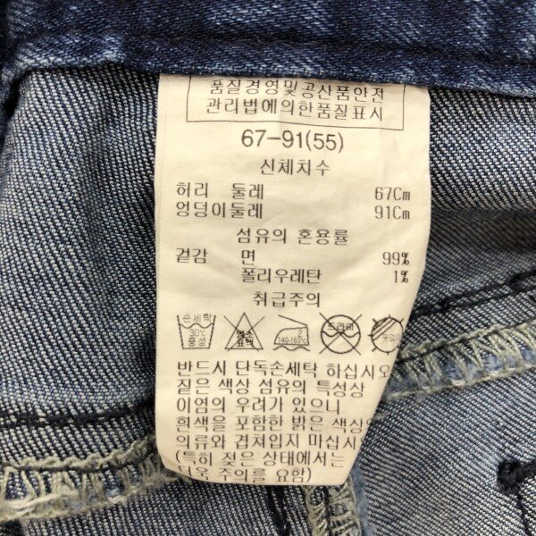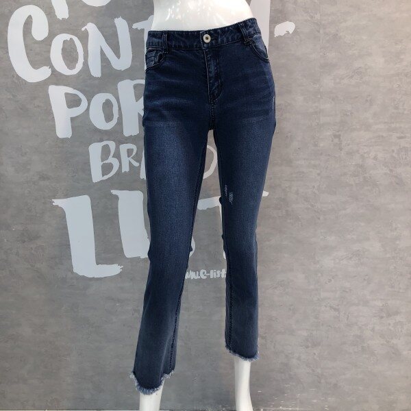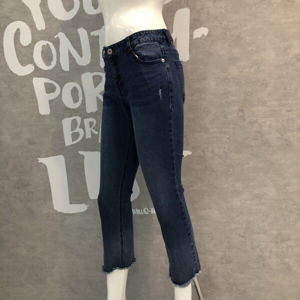크롭 기장의 스트레이트 핏에 컬오프 디테일이 유니크한 데님 팬츠입니다