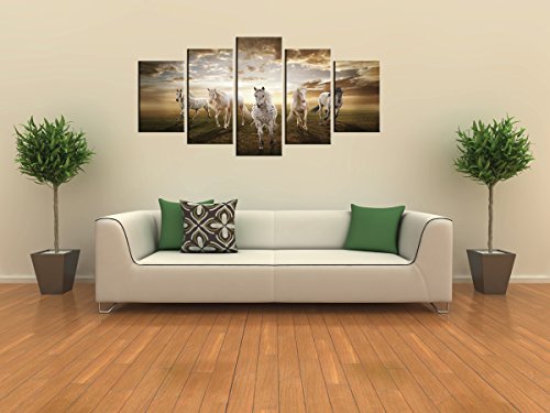 -. Title : Canvas P.R.Ints ,Sk002 Modern Canvas Wall Art White Horse, Stretched and Framed Ready to Hang, 5 Panels White Horse Canvas P.R.Int Photo Canvas Art for Home Decoratio