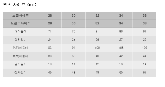 | 사이즈 | 28,30,32,34,36 |