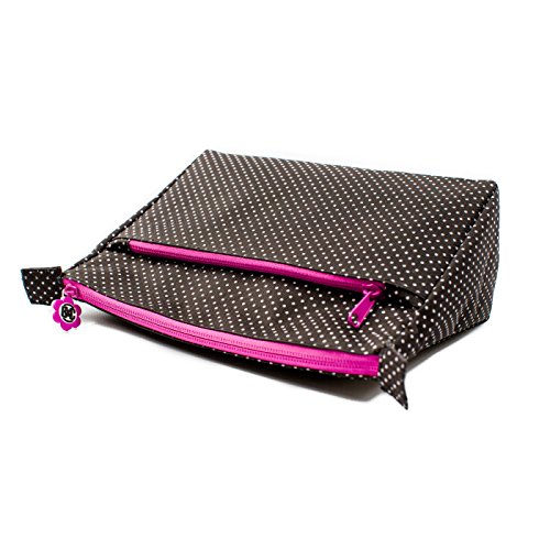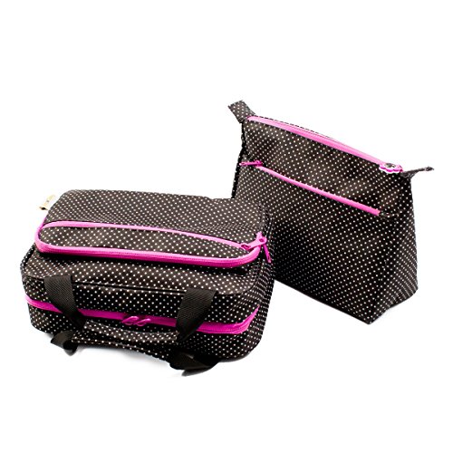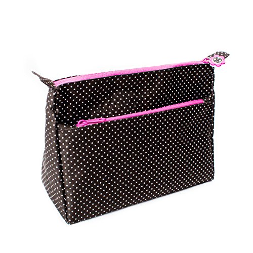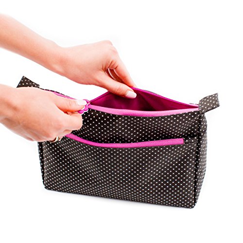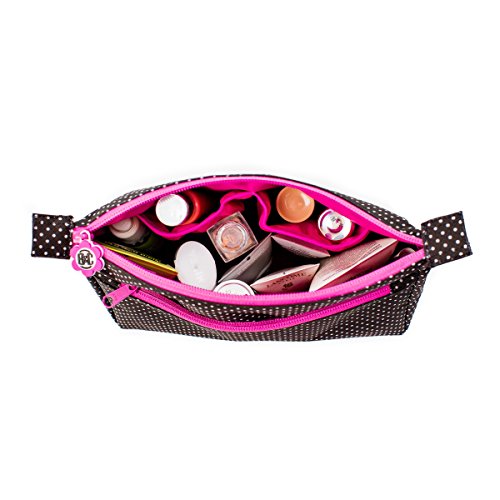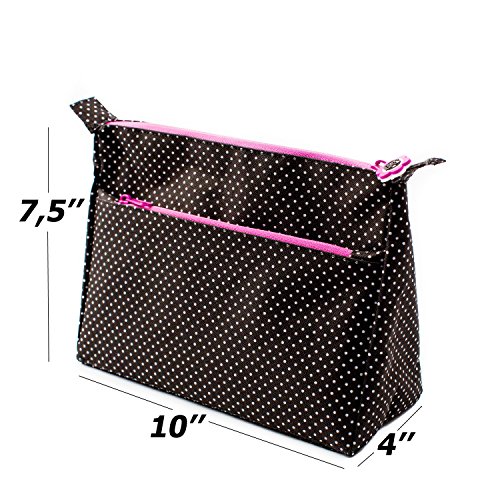 OPTIMAL SIZE AND GREAT DESIGN: 10" x 7.5" x 4" Double zipper bag design. Big main compartment with one inner zippered lash pocket, to keep your jewelry or discreet items, and two convenient inner slip pockets will fit all your makeup essentials and more. Large side zippered pocket to hold all additional items.