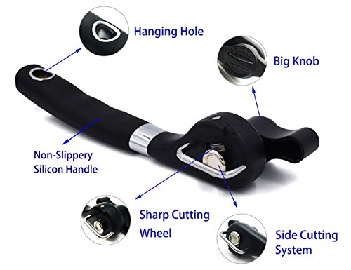 - PERFECT GIFT:It has a stylish and attractive design in black and steel colors that looks great. This safety can opener as gift suitable for any occasion such as Weddings, Christmas,Housewarming Parties and camping etc.
