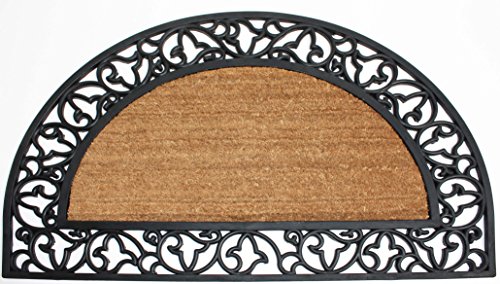 -. Title : J & M Home Fashions Coir and Rubber Scroll Border Plain Half Round Doormat, 24" x 40"
