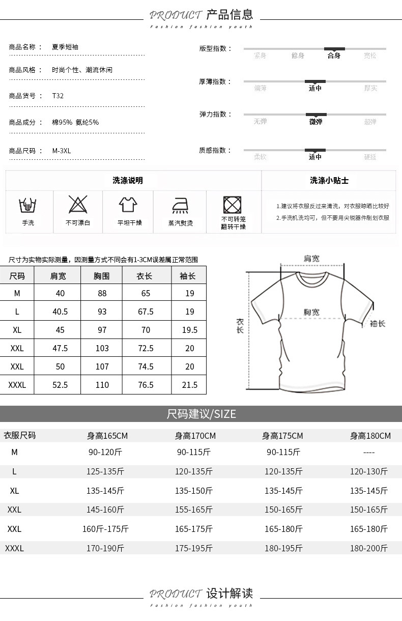 材质成分: 棉95% 聚氨酯弹性纤维(氨纶)5%