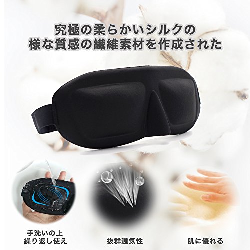 HUYOUの睡眠アイマスクは:立体構造&抜群通気性が得点です。人間の顔面に合わせた立体的な形をデザインし、非常に柔らかいシルクの様な質感の繊維で作成されており、息苦しい感じがなしで着け心地がいいです。