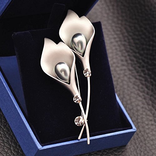 -. Title : SanMeader Christmas Valentine's Day gift Tulip Flower Brooch for Women Bridal Prom Gold/Silvery