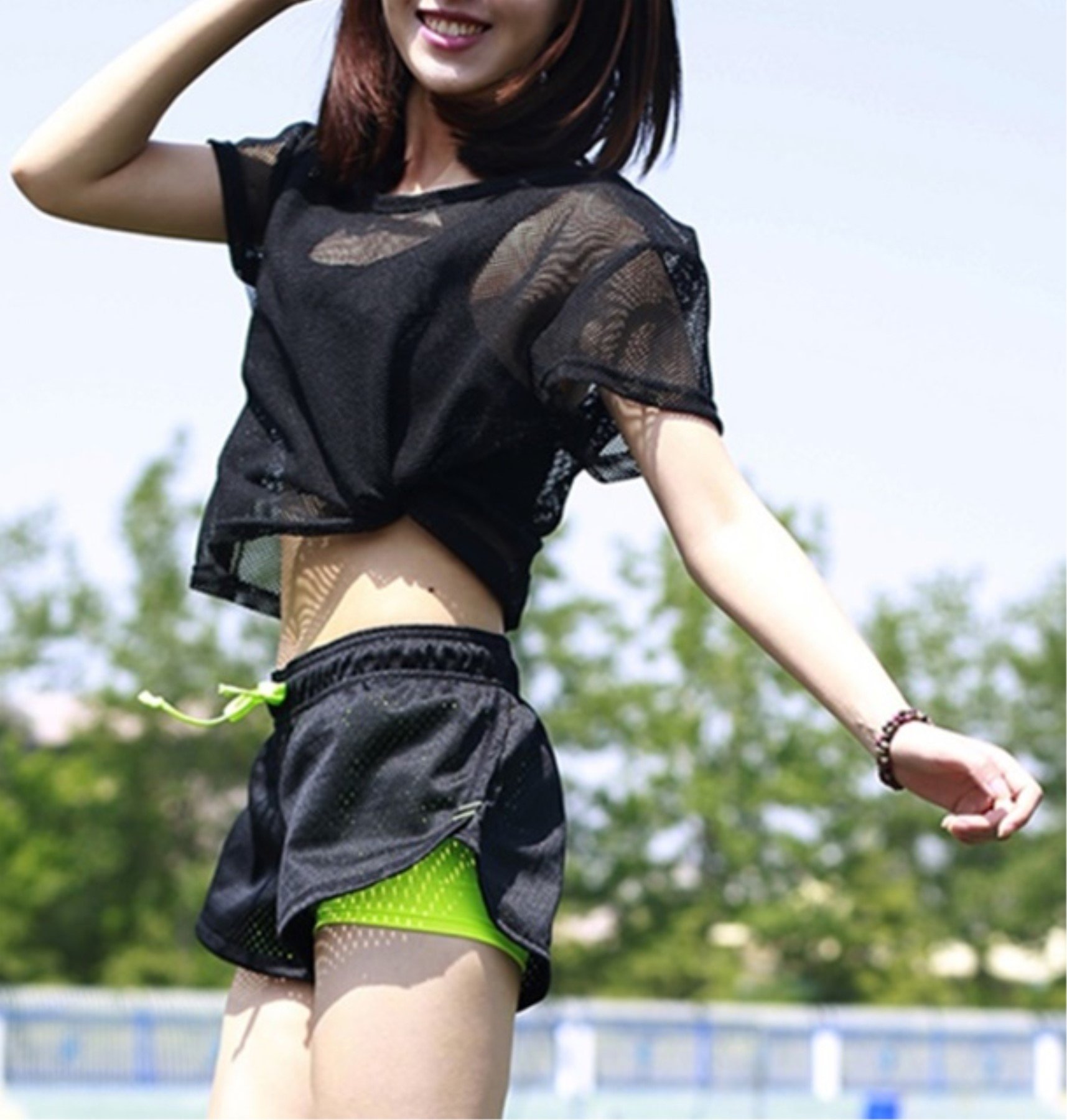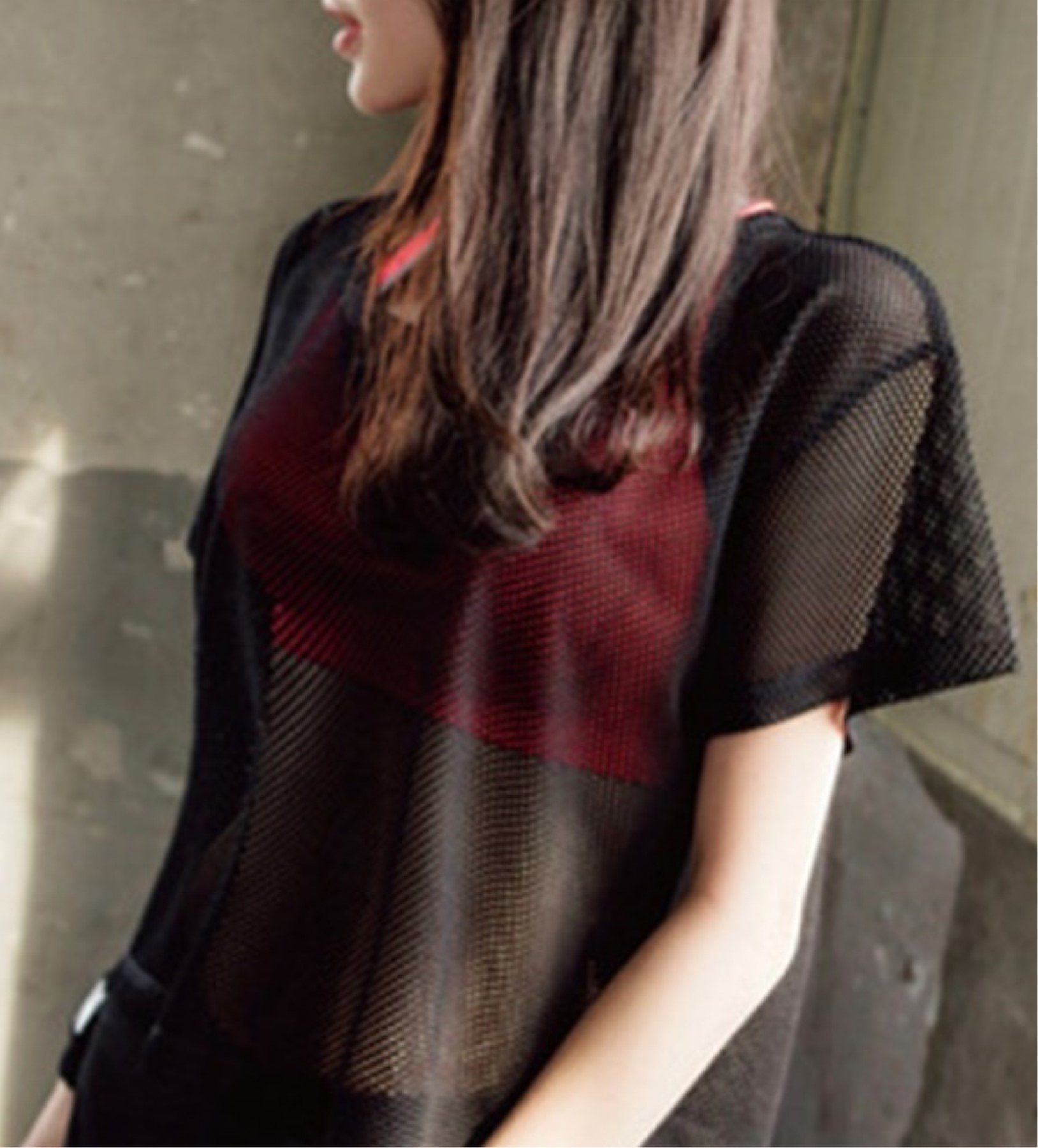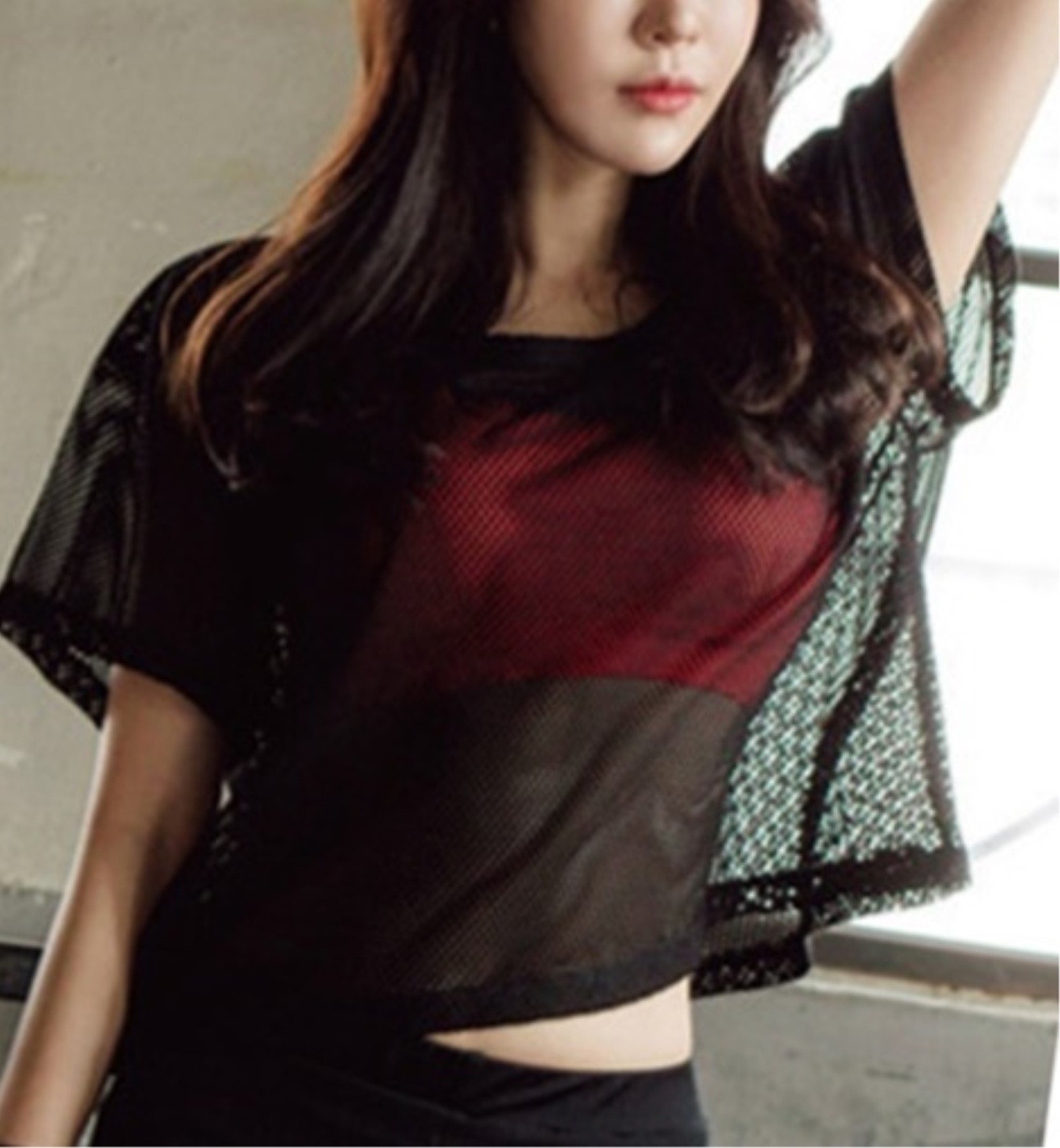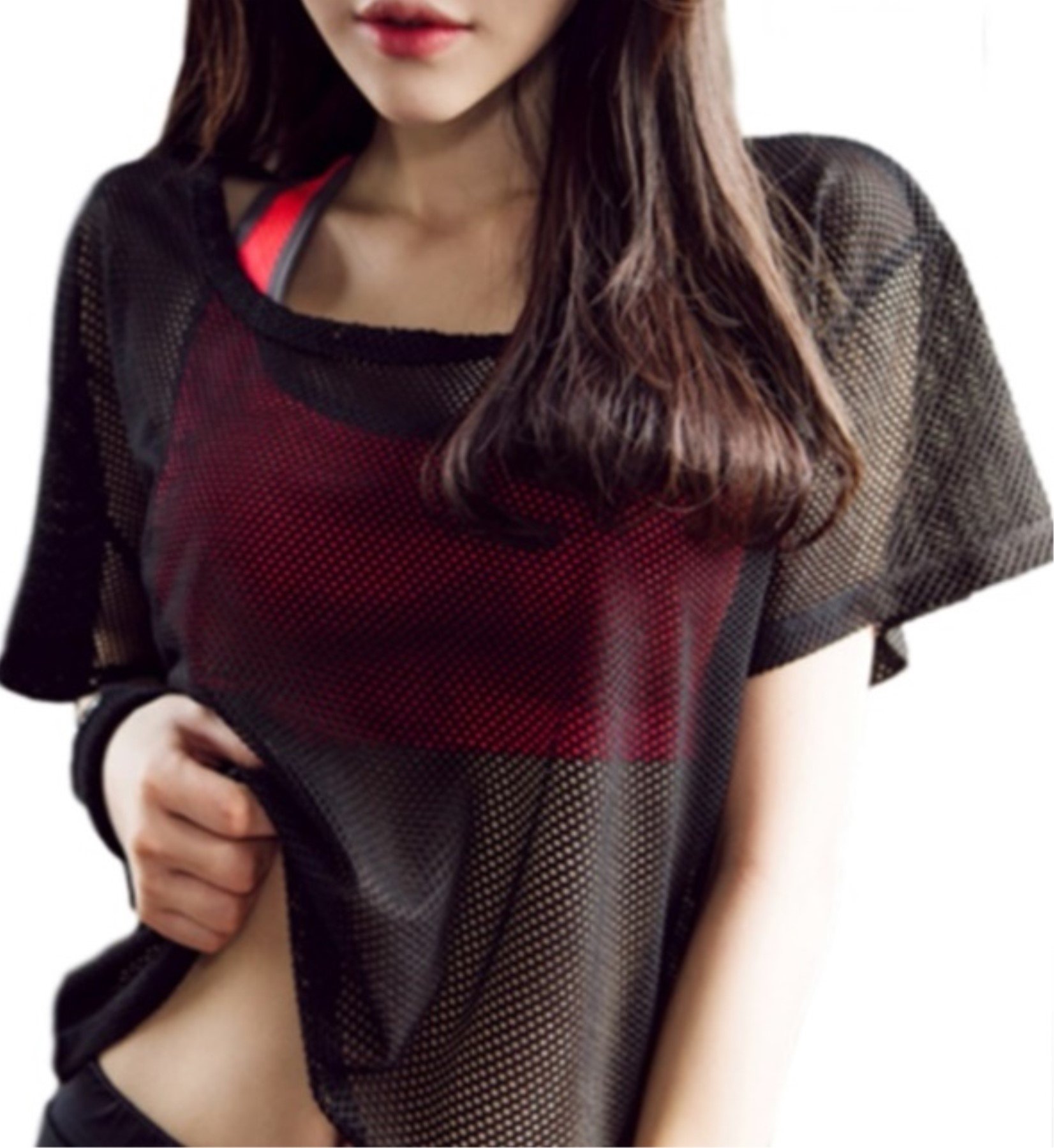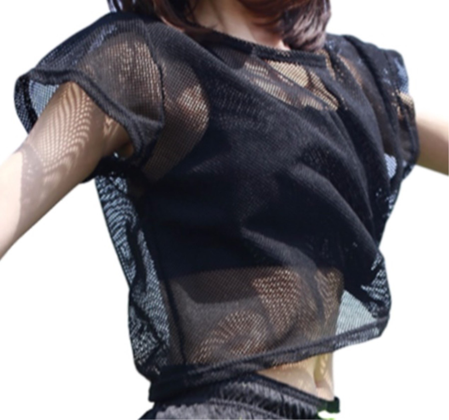 (Bub Ohana) bubu o_hana t shirt mesh short sleeve yoga dance ladies sense of sheer