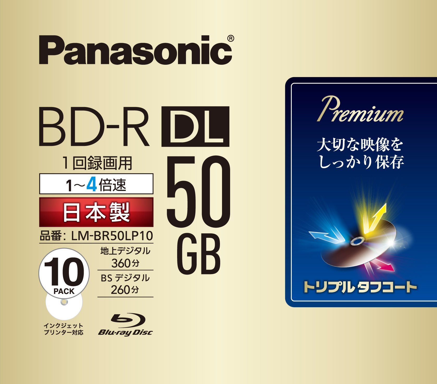 Panasonic Blu-ray BD-R Recordable DL Disk | 50GB 4x Speed | 10 Pack Ink-jet Printable