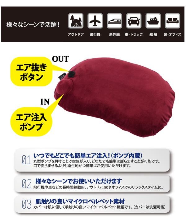 エア注入もエア抜きも指1本で簡単!!旅行の際の移動中や、オフィスなどでのリラックスタイムにピッタリ♪持ち運びに便利なポーチ付き。