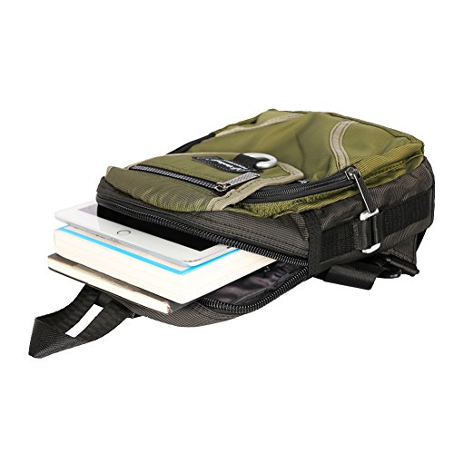 Product Description About This Cool Sling Bag: The compact, functional and durable sling bag is being manufactured by high quality water resistant nylon. One main compartment along with many medium pockets, easy to fit your various items. The large main compartment can hold up to 10 inch tablet. The shoulder strap is adjustable, it's wide and thickly padded with air mesh that can help you wear comfortably. It has every pockets you need. What You Can Put in This Bag? ? Standard size iPad, Kindle, or 10 inch tablets ? Books, power bank, charger, cables,GoPro or medium size camera. ? Wallet, cash, keys, pens. ? Inside Deep Zippered Pockets in the Main Compartment for: ID Card, Passport, Credit Cards... Occasions: ? Perfect sling bag for working, traveling, hiking, camping, college, campus and everyday using. How to Maintain The Backpack? ? Please do not wash with liquid detergent or bleach. ? Clean with wet cloth if necessary. ? Wash Separately to avoid staining. Package Includes: ? 1 * Sling Bag 0
