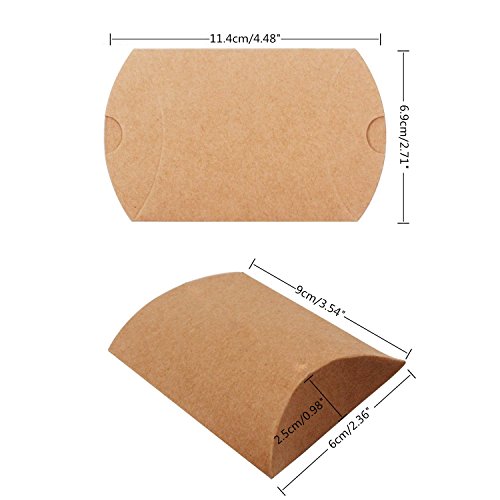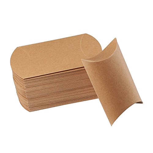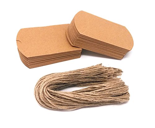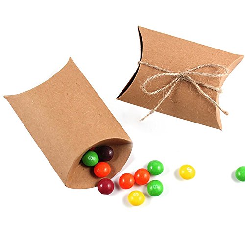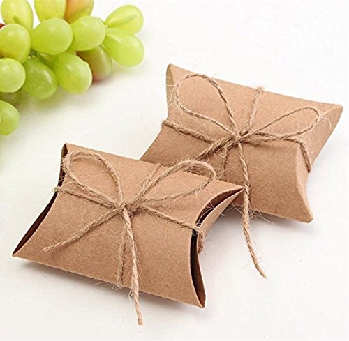 Honbay 50pcs Kraft Paper Pillow Candy Box with 50pcs Jute Twine for Wedding Party Favor