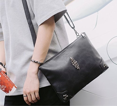 -. Feature : シンプルながらインパクトのあるクラッチバック! 季節問わず、オールシーズンでご利用頂けます。 / カラー:ブラック メイン素材:PUレザー / 本体サイズ(約):高さ24㎝、横幅32㎝、マチ2㎝ / ポケットの数:ファスナーポケット(外側1/内側1) オープンポケット(外側0/内側2) / 付属品:ハンド紐×1、ショルダー紐×1(両方取り外し可能)