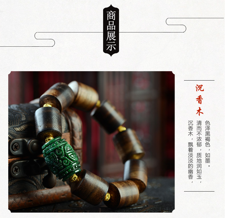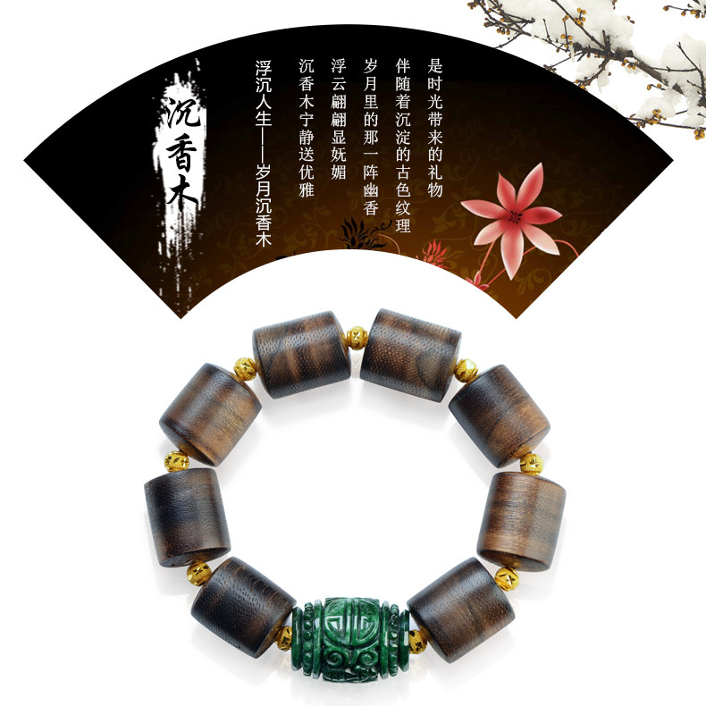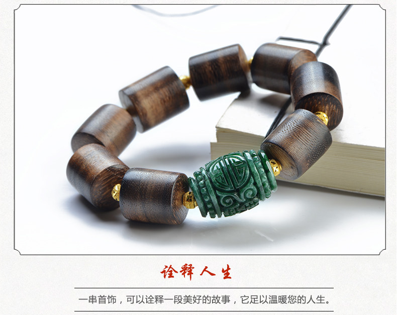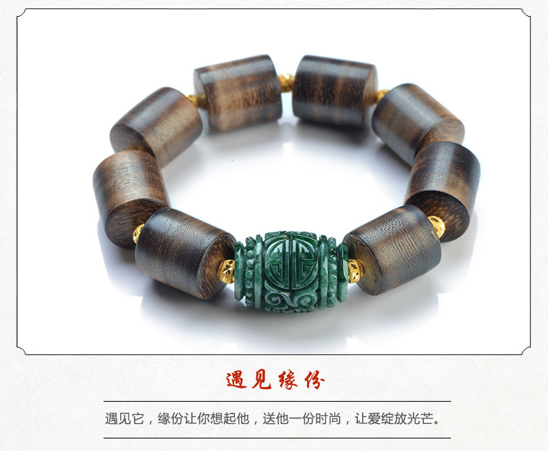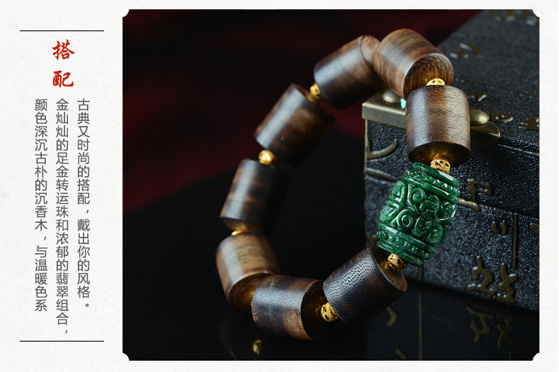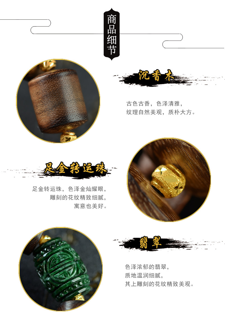 黄金手链足金转运珠翡翠路路通手串沉香木桶珠男款金手链