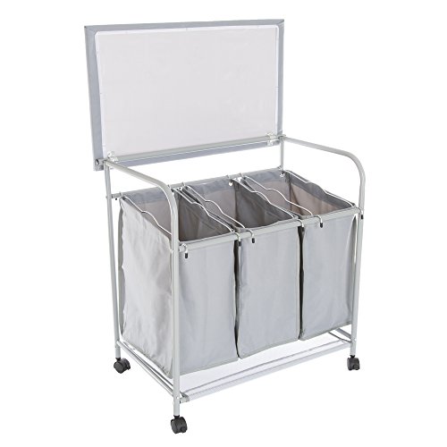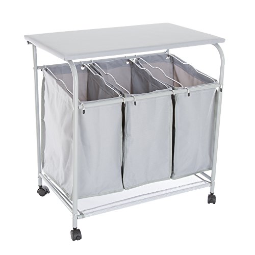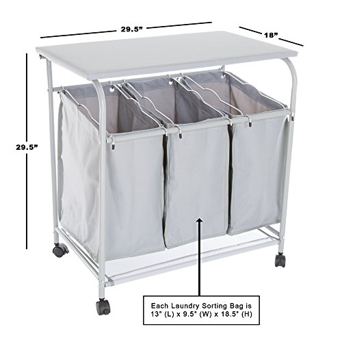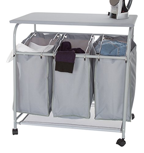 Lavish Home Rolling 3 Bin Laundry Sorter and Ironing Station - Gray