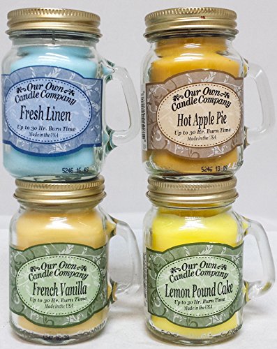 4 Pack Everyday Assortment Mini Mason Jar Candles - 3.5 Oz French Vanilla, 3.5 Oz Fresh Linen, 3.5 Oz Lemon Poundcake, 3.5 Oz Hot Apple Pie, By Our Own Candle Company