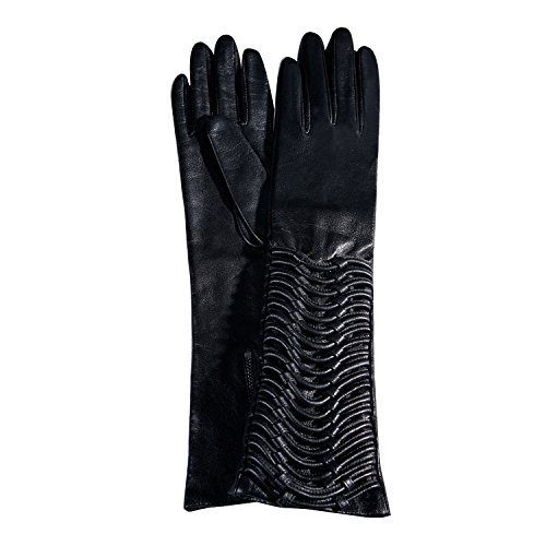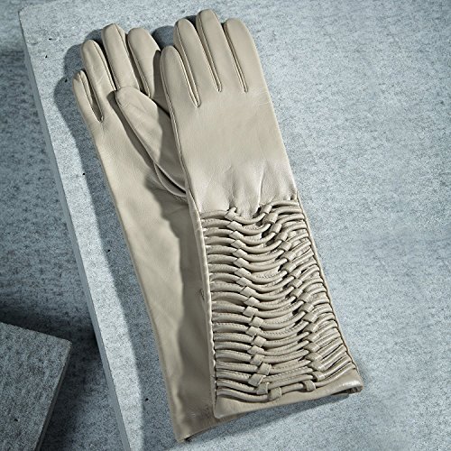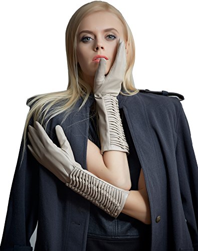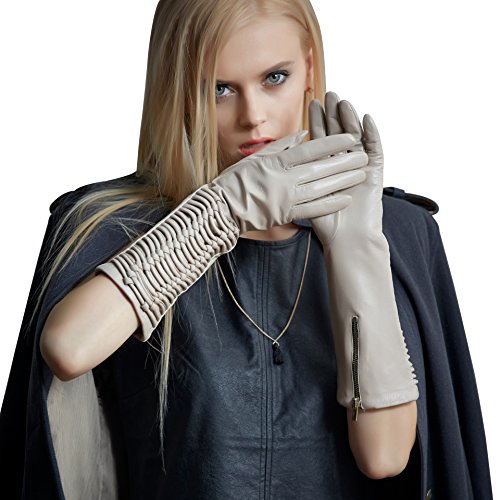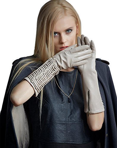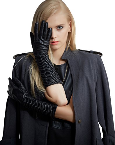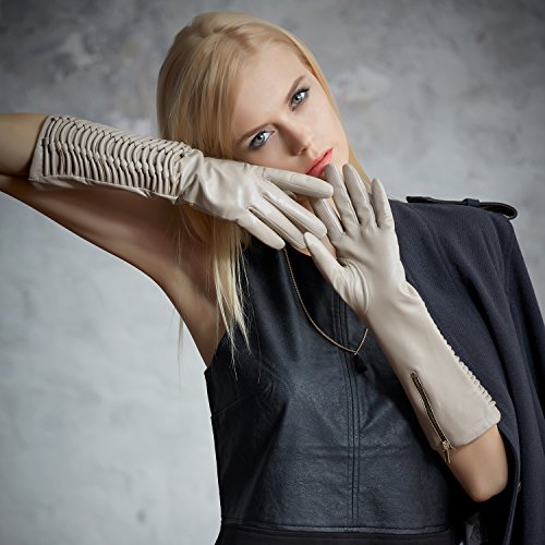 Fioretto Handmade Womens Winter Long Gloves Goat Lambskin Leather Gloves Thin Lined