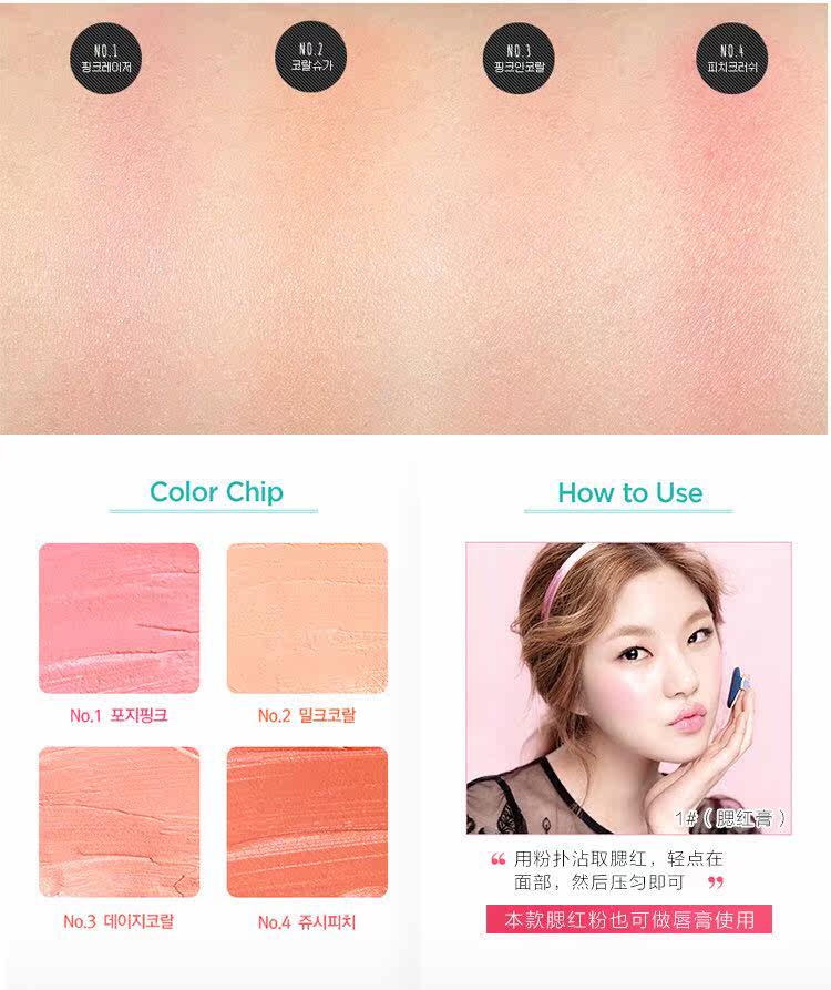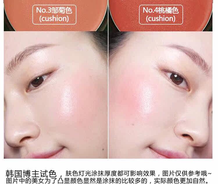 到现在你包包里还没有一个气垫腮红吗??在韩国妹子的宝宝里最必备的hot单品!!!气垫腮红!你不要小看腮红觉得这只是追求精致的妹子才用的步骤!其实恰恰相反!!腮红是提升气色的关键!用了你整个人立马显得精致有气色! 而且气垫腮红比一般粉质腮红更加好上妆!更加水润!