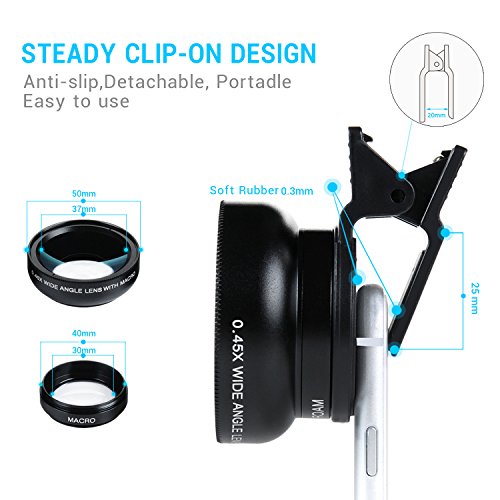 0.45X Super Wide Angle Lens: Capture a wider view of beautiful landscape, architectural , group of people into your photos. High definition wide angle image, restore a truest fantasy World for you.