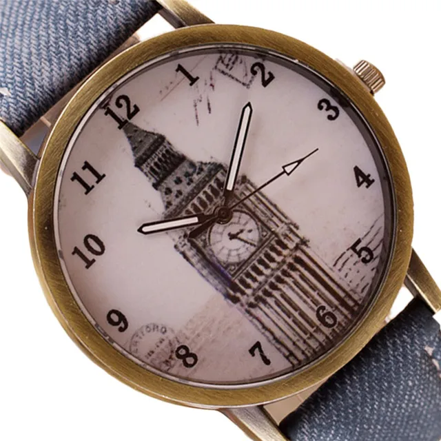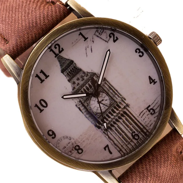 | [해외] 석영 시계 레트로 시계 타워 손목 시계 카우보이 가죽 밴드 아날로그 숙녀 팔찌 시계 Relogio Masculino 도매 |