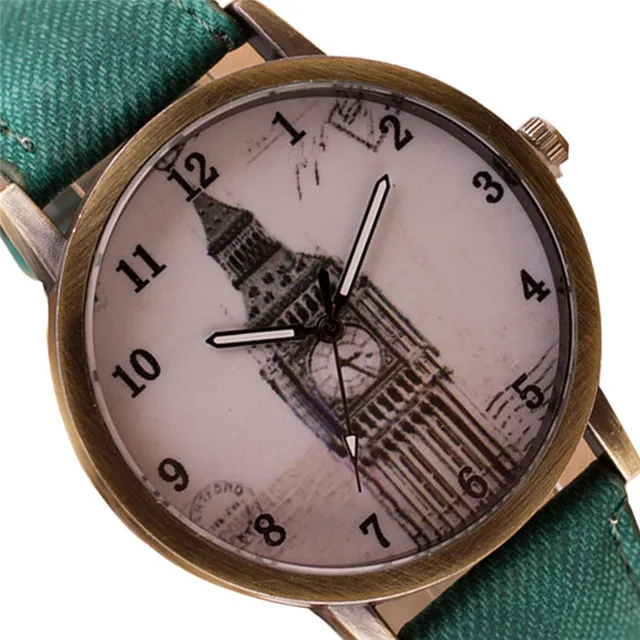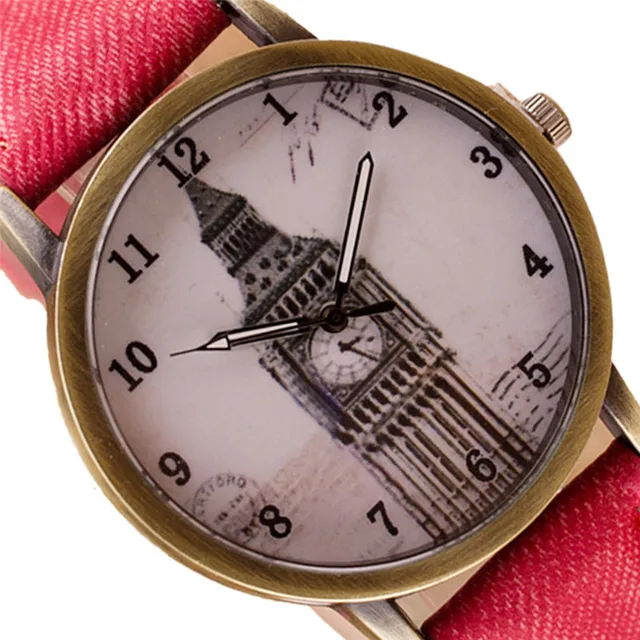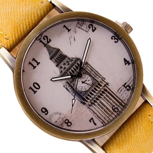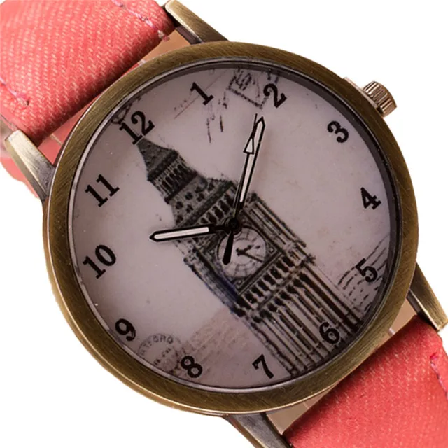 상품 내용 석영 시계 레트로 시계 타워 손목 시계 카우보이 가죽 밴드 아날로그 숙녀 팔찌 시계 Relogio Masculino 도매 특징: